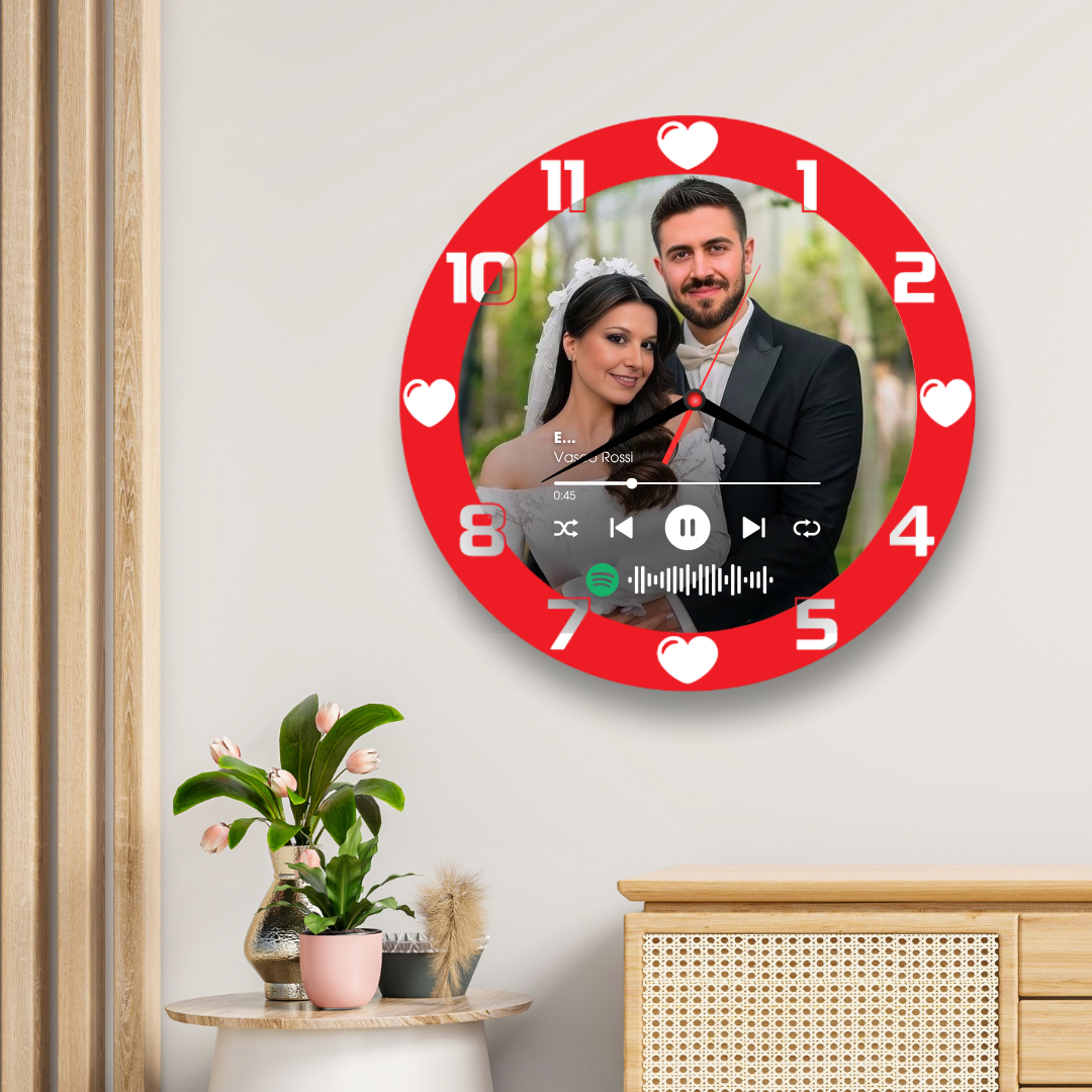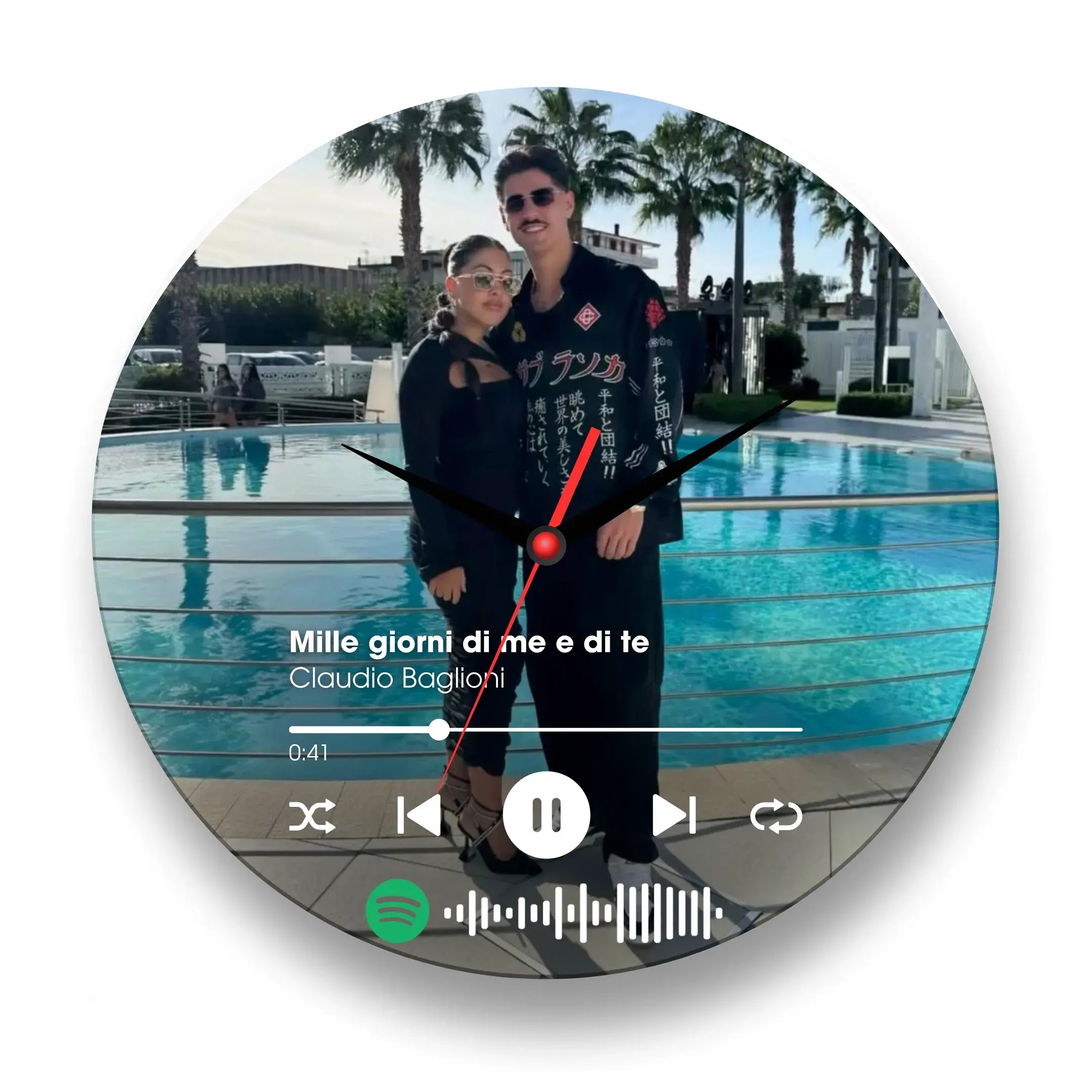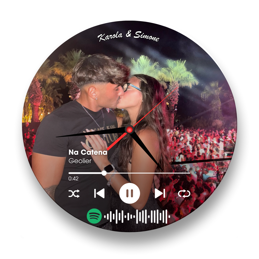 Aggiungi la tua canzone preferita di Spotify, il nome dell’artista e la copertina del brano: un orologio che racconta la tua storia musicale.